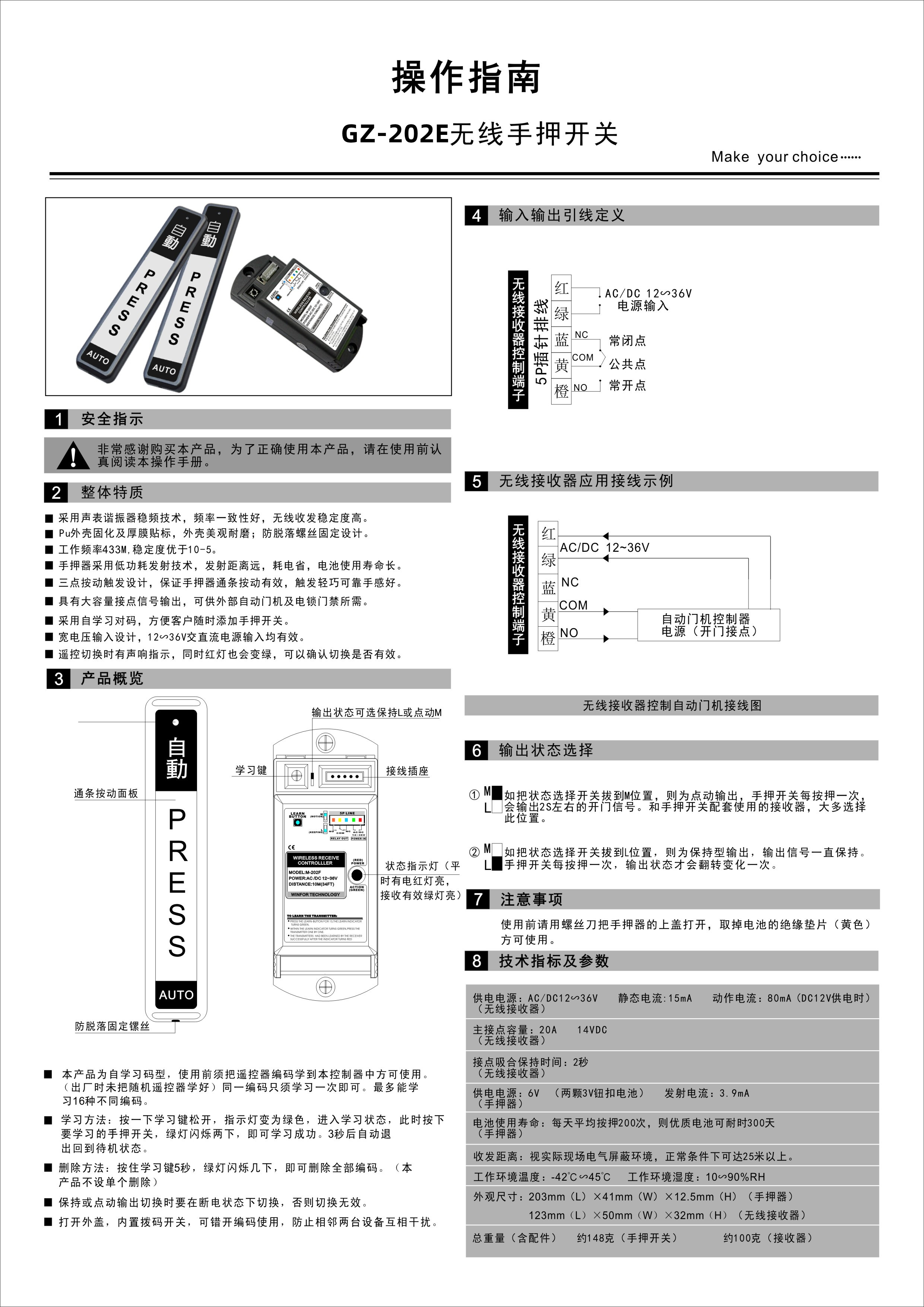 自动感应门无线手押开关202E